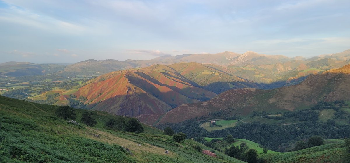 Frühstück um sieben, Abmarsch um fünf nach acht – und sofort blies mir der Wind so heftig ins Gesicht, dass ich mich fühlte wie ein Wanderer im Windkanal. Mein Rucksack verwandelte sich in ein Segel, und ich war kurz davor, unfreiwillig nach Pamplona zu fliegen. Von 800 hm in Orisson ging’s hoch auf 1420 hm zum Col de Lepoeder. Oben angekommen, entschied ich mich gegen den steilen Abstieg. Meine Füße hatten mir sehr klar signalisiert: „Mach das, und wir kündigen.“ Also nahm ich den Umweg – diplomatische Lösung. Da ich nichts reserviert hatte und angeblich schon die Hälfte der Betten weg war, rannte ich den Berg runter wie ein Pilger auf der Flucht. Am Ende völlig unnötig: In Roncesvalles bekam ich problemlos ein Bett. Sogar die, die um halb sieben abends ankamen, wurden noch untergebracht. Vielleicht hatten sie reserviert, vielleicht hatten sie einfach göttlichen Beistand. Tagsüber hatte ich, mangels Alternativen, nur eine Banane, ein geschenktes Cookie und ein Sandwich gegessen. In Roncesvalles traf ich dann Sahra, Brain und Gold‑Amy, die mir ein Bier spendierten. Da mein Magen leer war wie ein spanischer Dorfplatz zur Siesta, stieg mir das Bier sofort zu Kopf. Zum Glück gab’s beim Pilgermenü reichlich: Suppe, Pasta, Fisch mit Pommes und ein Eis. Der Tischwein war… sagen wir mal: Er war da. Der Merlot vom Vortag hätte ihn ausgelacht. Um zehn lag ich im Bett, bereit für heiligen Schlaf. Stattdessen gab’s ein ständiges Kommen und Gehen, Licht aus dem Gang wie in einem Horrorfilm – und mitten in der Nacht schrie eine Frau im Schlaf. Wahrscheinlich träumte sie vom Wind.